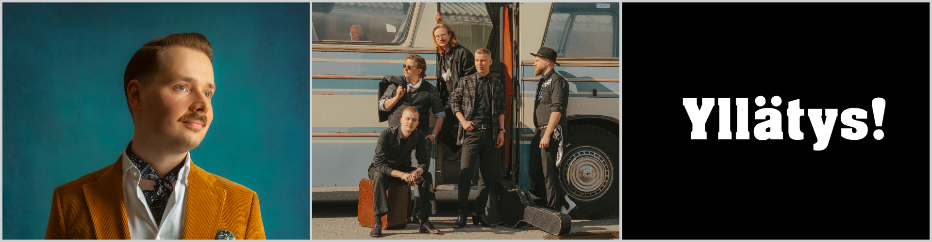 26.12.2025 TAPANINPÄIVÄ Komiat, Albert Salminen Trio, Yllätysesiintyjä. Ennakkolippujen myynnin alkaminen tiedoitetaan myöhemmin.